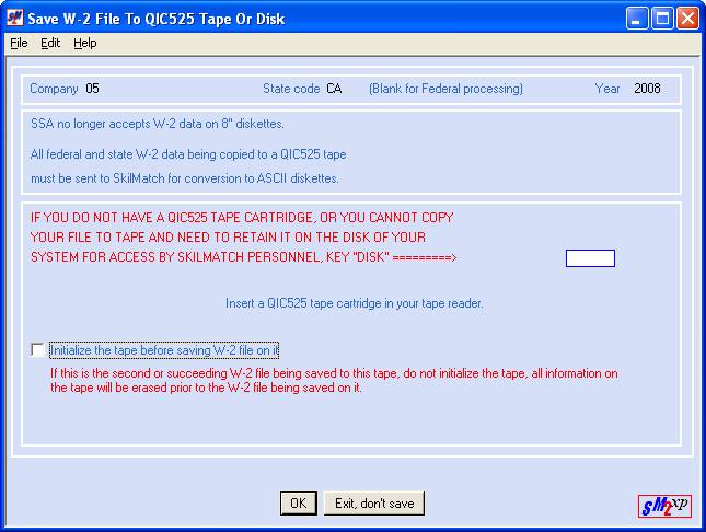 then you should save your W-2 files to the hard disk of the IBM SERVER (we no