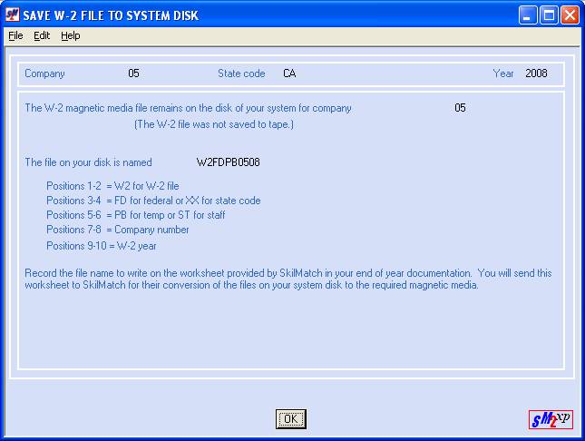 worksheet to SkilMatch for conversion to the required magnetic media.
