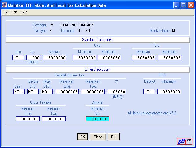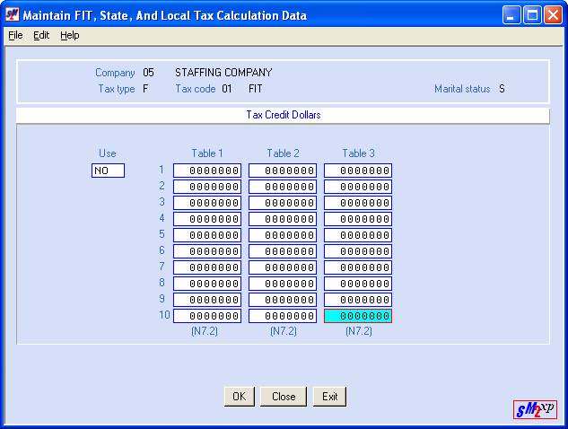 are provided to assist customers in setting up your tax table records and to