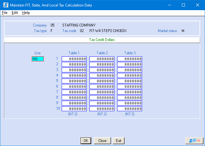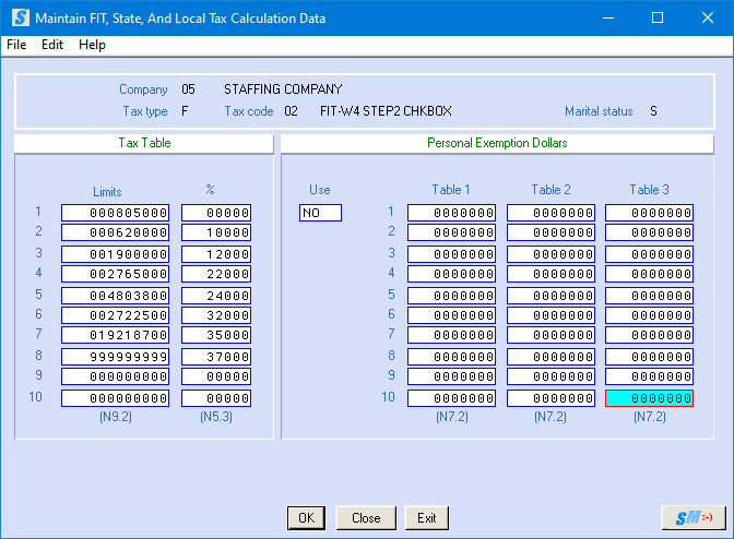 tax table 02, “FIT-W4 STEP2, CHKBOX”